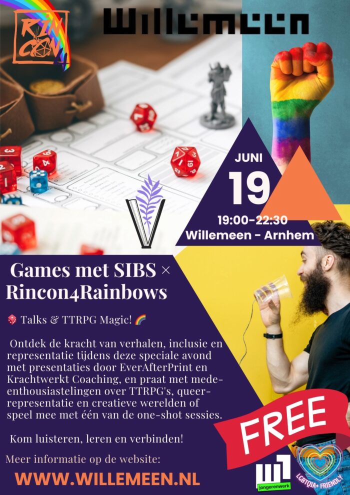Op donderdag 19 juni is Stichting Rincon4Rainbows bij de Willemeen te gast om je bij deze speciale Sibs-avond de magie van role playing games te laten ervaren. In dit soort spellen speel JIJ de held en beleef jij, samen met andere spelers, onder leiding van een spelleider een avontuur waarin jouw groep (en de dobbelstenen) beslissingen maken die het verhaal sturen.