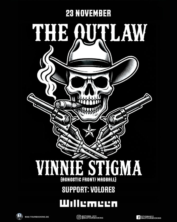 The Outlaw Vinnie Stigma" is an Americana music project spearheaded by Vinnie Stigma, co-founder of the hardcore band Agnostic Front, alongside Chip Hanna of U.S. Bombs. The project blends outlaw country, roadhouse blues, and roots rock influences. It is a collaborative effort between Stigma and Hanna, who share a love for both music and a bond forged through late-night sing-alongs during their touring years.